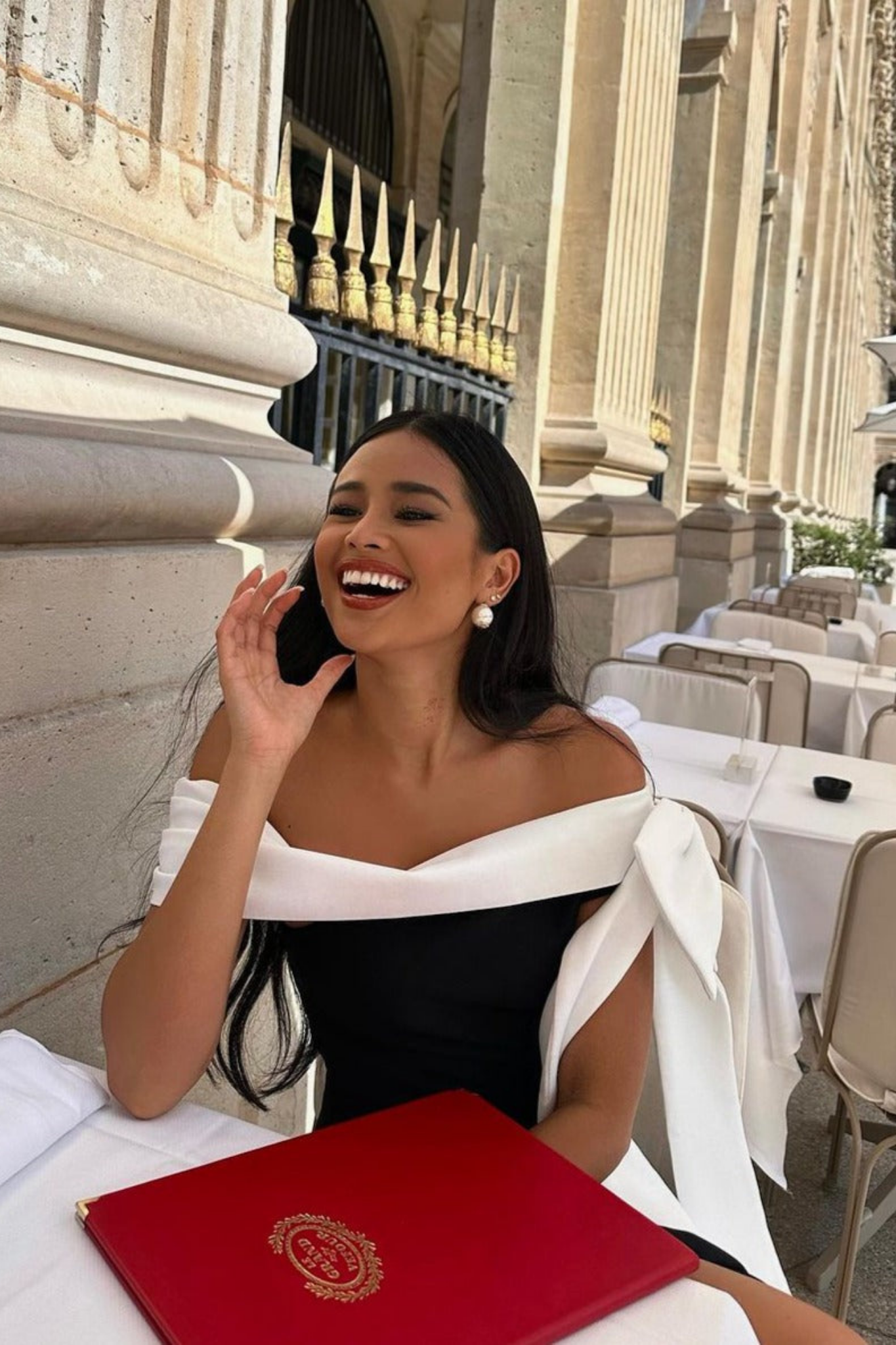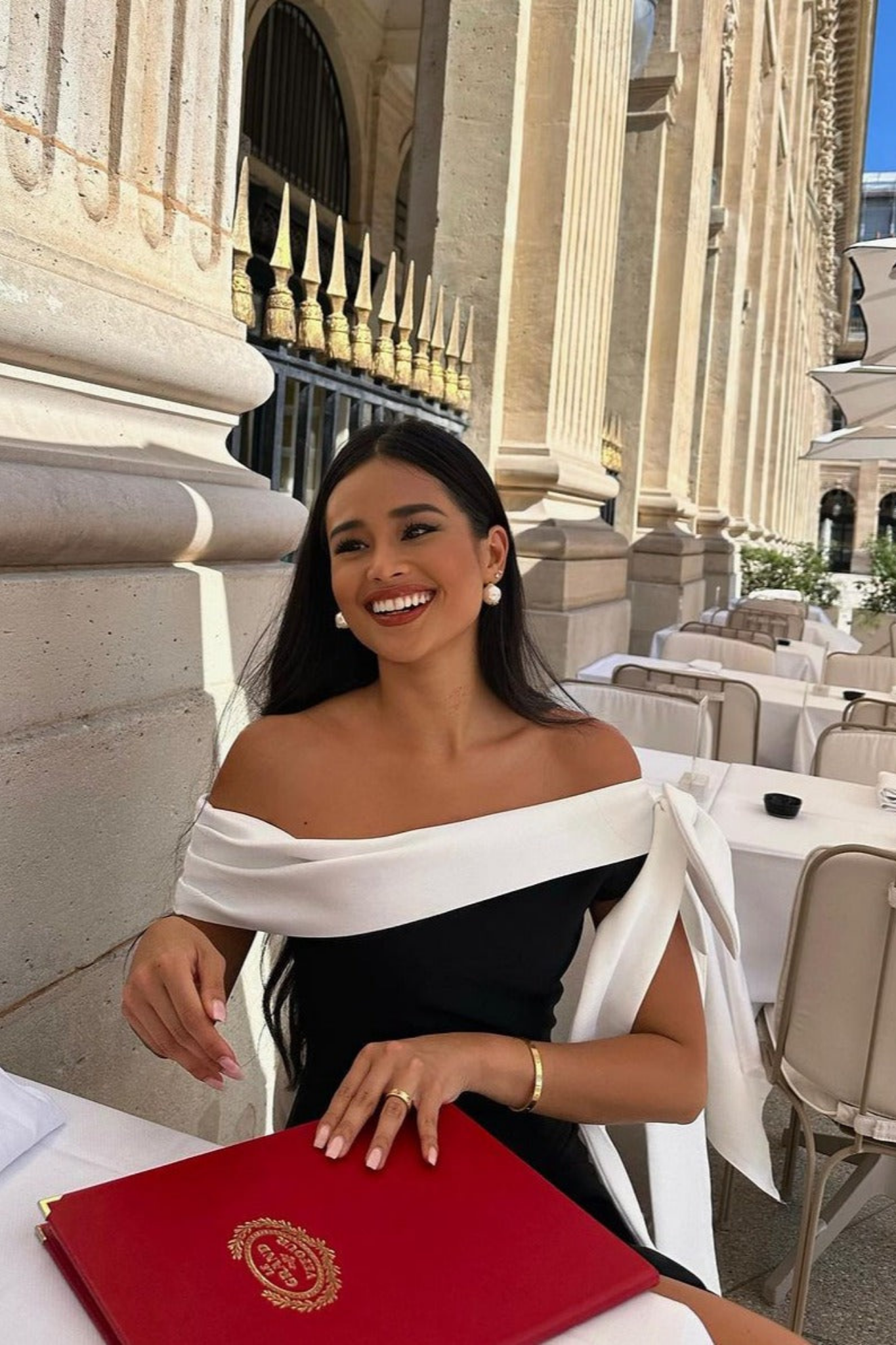 - Statement Bow Detail: A striking white sash bow adds dramatic charm and feminine flair.