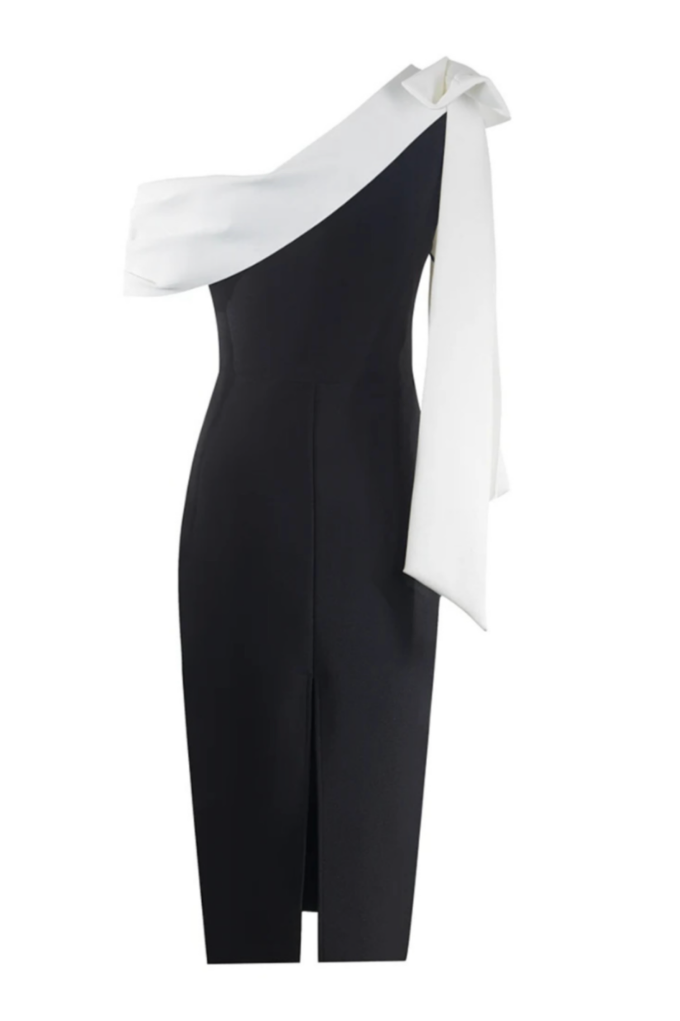 The Aria is crafted from a thick, luxurious stretch bandage fabric that sculpts and supports in all the right places. This off-shoulder style is elevated with a statement white sash bow that drapes gracefully from the neckline to the back, secured with an inner invisible silicone non-slip trace for comfort and confidence. Designed with a flattering bodycon fit, a subtle back midi split, and an invisible side zip closure, Aria embodies the perfect balance of classic sophistication and modern allure.