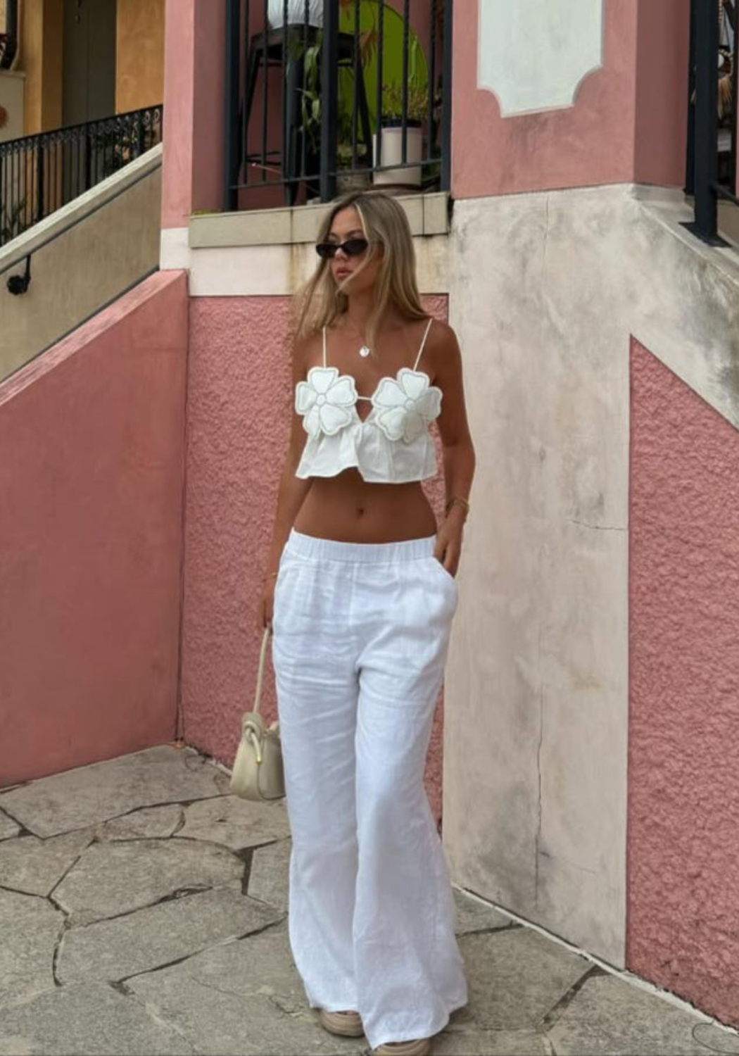 Elevate your wardrobe with the Ariana Sophisticated Top, a refined piece designed to add a touch of glamour to any outfit. Featuring delicate floral embellishments and a flattering cropped silhouette, this top is perfect for both daytime elegance and evening sophistication. With its adjustable straps and comfortable elastic back, it offers a flawless fit that enhances your natural shape.
