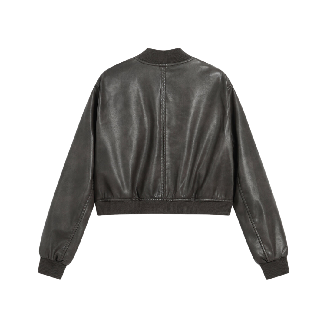 Achieve timeless style with the Zinnia Jacket — a modern twist on the classic bomber silhouette. Crafted from distressed faux leather with a vintage finish, it delivers edge and elegance in equal measure. This cropped layer brings bold character to every outfit.